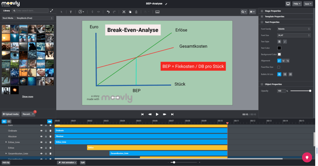 Mit der Browser-Applikation Moovly lassen sich animierte Erklärvideos erstellen, die man beispielsweise als Teaser für ein neues Stoffgebiet oder als Zusammenfassung eines soeben abgeschlossenen Stoffgebiets verwenden kann.