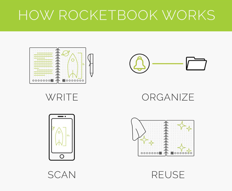 Oft hat man unterwegs die besten Ideen, die man niederschreiben und mit anderen teilen möchte. Auf dem Handy schreibt es sich allerdings nicht sonderlich gut, und einen Tablet-Computer hat man nicht immer und überall mit dabei. Hier kommt RocketBook ins Spiel.