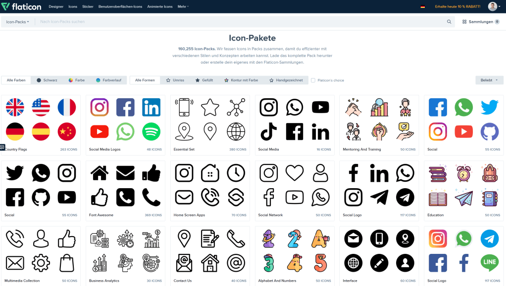 Wer ansprechende Icons oder Stickers sucht, um damit seine Postings, Präsentationen oder Berichte grafisch aufzupeppen, wird bei Flaticon zweifellos fündig. Es ist unglaublich wie viele verschiedene Grafiken auf Flaticon zu fast jedem Suchbegriff vorhanden sind.