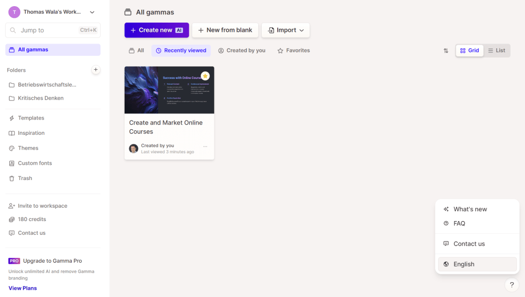 Die Bedienung von Gamma ist sehr einfach. Bei Bedarf stehen auf Youtube aber jede Menge Videotutorials zur Verfügung.